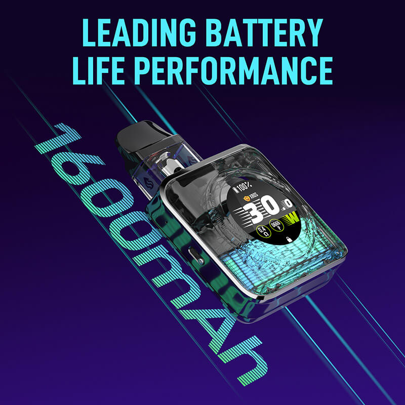 One of the most exciting features is the 1.09-inch colour touchscreen. It makes using the device incredibly simple and fun, allowing you to swipe through settings and choose from 29 different animated themes to personalise your screen. You can easily adjust the power output up to 30W to find your perfect vape strength.